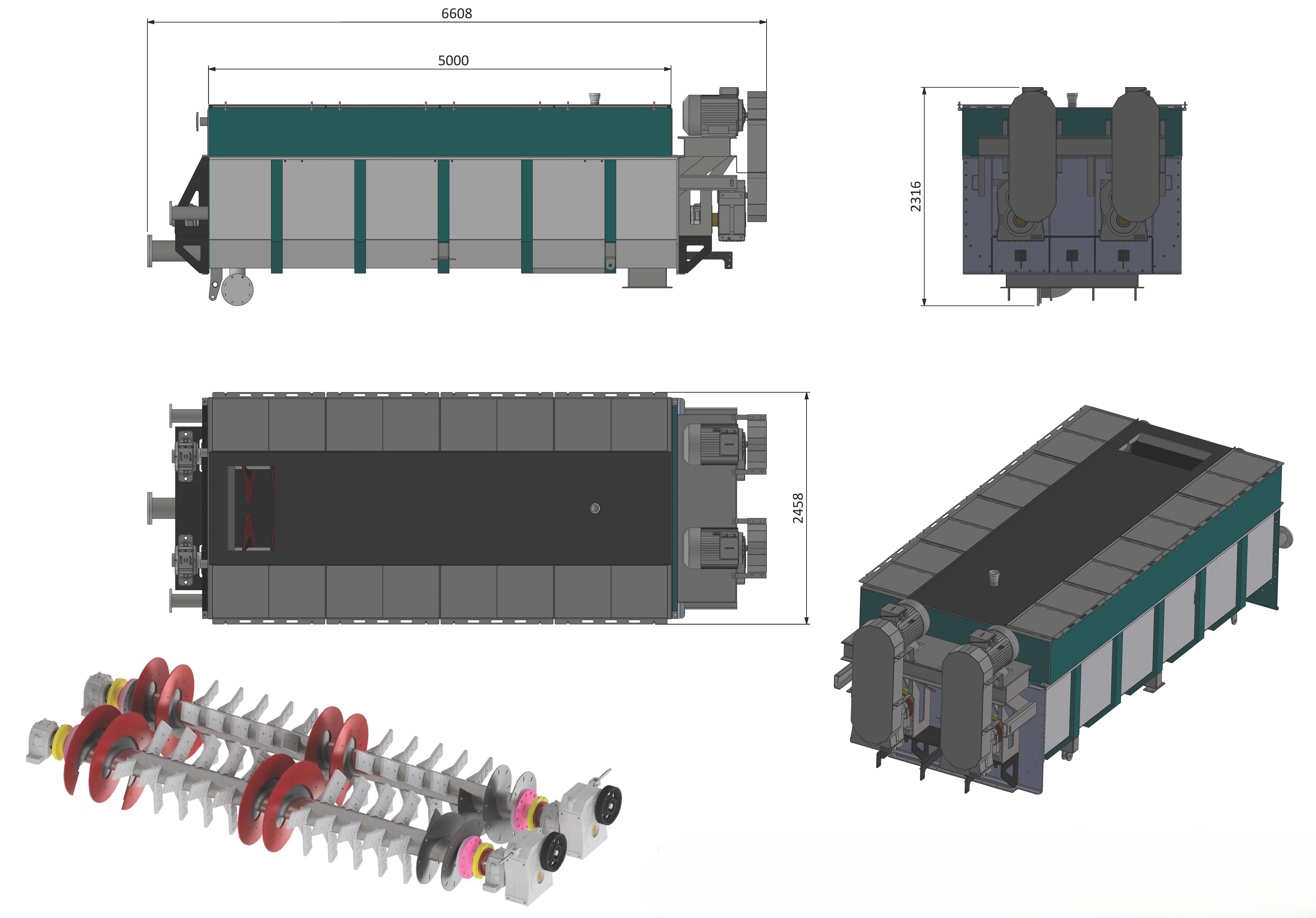 | Screw | Double Row Carrier Spiral Spoons, S235JR, 8 mm Sheet and the Arms Against Wear Will be Covered With Casting, Helices are Hardox Coated. |