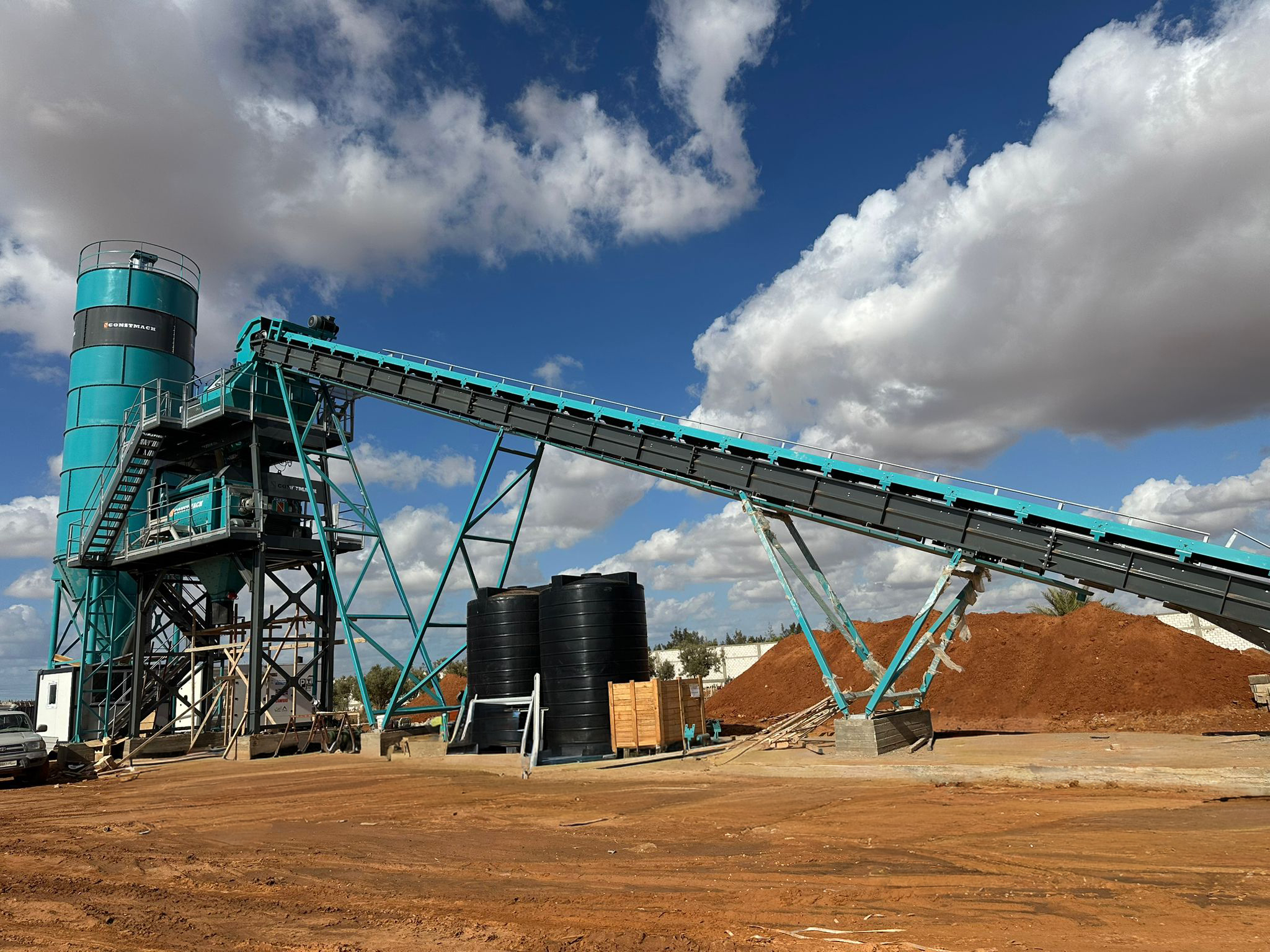 Different layouts and site plans for STATIONARY 160 concrete plant are applied according to the conditions of the field where the concrete plant is to be installed and in case of the field sizes are limited, aggregates is transferred by skip hoist system instead of belt conveyors.