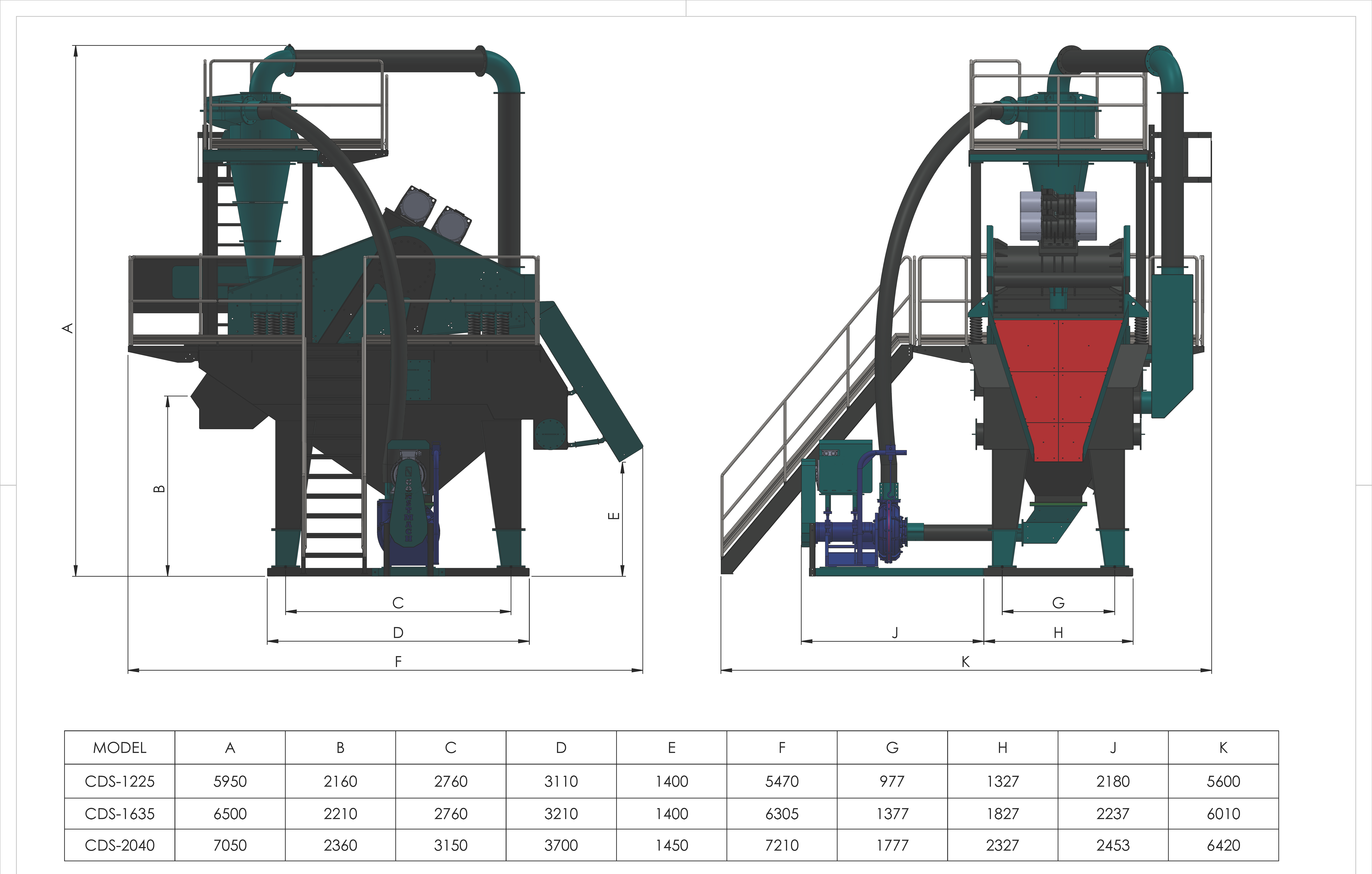 | CDS-1225 | 1.200 x 2.500 mm | 15” | 37 кВт | 2 x 4.5 кВт | 60 - 80 т/h |