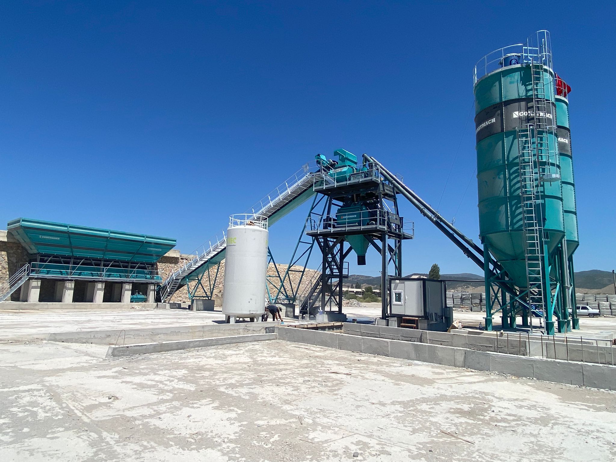 CONSTMACH SABİT 100 tam otomatik beton santrali, özel şantiye alanlarında yüksek kapasiteli ve uzun süreli hazır beton projeleri için uygun bir seçenektir. Her türlü beton türünü üretebilme kabiliyeti, stabilize ve sorunsuz yapısı, yedek parça garantisi, teknik servis hizmeti ve yüksek kalitesi, CE standartlarına uygunluğu ile SABİT 100 beton santralleri profesyoneller tarafından tercih edilmektedir.